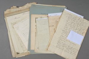 TARN-ET-GARONNE. Une trentaine de documents divers, XVIe-XIXe. - Cahier manuscrit de 26 pp. in-folio, daté de 1543. Concerne 3 arrêts rendus à l'encontre de François de Caumont seigneur de Puygaillard, au sujet des bois appelés Barbares (territoire de Feutenac ?) - Parchemin de 1683 contenant des extraits de reconnaissances féodales de 1479 à Beaumont-de-Lomagne. - Cahier de 45 pp. in-4 : enquête à la requête de messire Jean Louis de Gontaud de Biron abbé de St Pierre de Moissac à propos d'une métairie qu'il possède dans la juridiction du Boudon (1729) - Supplique à l'intendant de Montauban pour la réparation de l'église et presbytère de la paroisse Ste Victoire de Caussade (Montauban, 1780). - Imprimé : « Adresse de la Société populaire de Montauban à la Convention nationale » (15 février 1793) - Lettre écrite de Montauban en 1654 à un marchand de Bordeaux. - Beau passeport révolutionnaire (Moissac, 1793) avec cachet de cire. - Arrest de la Cour des aides et finances de Montauban portant règlement sur la reddition & jugement des comptes des communautés du ressort de ladite cour (18 juin 1768, 7 pp. in-4, imprimé à Montauban). - 8 numéros du Journal de Tarn et Garonne datant de la chute de l'Empire (27 mai 15 juin 1815). - Brevet provisoire de la décoration du Lys (Montauban, 1816). - Rare affiche « Bacs et bateaux - Affiche unique - Adjudication […] à titre de bail à ferme pour six années à dater du premier janvier 1838, des droits à percevoir sur les bacs et bateaux de passage établis à la traverse des fleuves et rivières du département [de Tarn et Garonne] » (Montauban, 1837, un coin déchiré). - Affiche sur la construction de l'écluse de Lagarde, sur le Tarn. Papier jauni. « Adjudication des ouvrages à faire pour la construction d'une écluse submersible de deux mètres treize centimètres de chute, à établir sur la rive droite du Tarn, près le Moulin de Lagarde ». Montauban, 1818. - Ensemble de lettres et manuscrits du XIXe : lettre d'Hippolyte Roux adressée « à monsieur et cher secrétaire perpétuel » (Montauban, 1853), 2 lettres du comice agricole de l'arrondissement de Moissac (1848), lettre de l'administration des Postes de Montauban (1866), lettre de la Société des sciences, agriculture et belles-lettres du département de Tarn-et-Garonne à un « cher collègue » (Montauban, 1859) + manuscrit sur un programme de cours et 1 lettre (1821). - 7 documents divers, XVIIe-XVIIIe : 2 pièces relatives à une usurpation de noblesse à Bellegarde « pour avoir pris la qualité de Noble » (Montauban, 1715), quittance d'imposition de la communauté de Poupas (1691), factum pour damoiselle Jeanne de Betboy, etc. - Affiche, 45 x 37 cm. Imprimée à Montauban, chez P.A. Fontanel, 1814. Ordonnance du Roi du 15 mai 1814, sur la conscription.