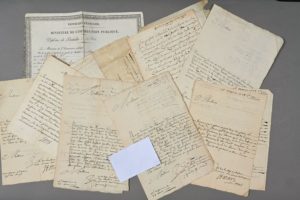 VAR. 15 documents, XVIIIe-XIXe. - [Saint-Maximin]. 8 lettres écrites par des consuls de Saint-Maximin, dont 5 durant la grande peste de 1720-1721 (au sujet des billets de santé pour participer à la foire de Ste Luce, la contrebande, la défense aux mendiants de rester aux portes des villes, la tenue des foires, la vente de vivres dans la ville, etc.) - 6 lettres diverses : Portalis (Toulon 1773), lettre sur la récolte des olives (Le Luc, 1813), 2 lettres au commandeur de Villeneuve de Beauregard (Draguignan, 1743) - diplôme de bachelier pour un citoyen natif du Luc.