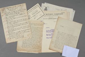 ESSONNE. Une dizaine de documents divers, XVIIe-XXe. - Mémoire des frais de funérailles « dans le chœur de l'église » de M. Arnoud, dressé par C. Gouin curé de Fleury-Mérogis (1693). Nombreux détails. - Terres de Bissy et Angervilliers. Pièce signée par le marquis de Bouville seigneur d'Angervilliers (1785) au sujet d'un retrait féodal + 1 lettre postérieure du marquis de Bouville. - 2 lettres de Marin Venard (Étampes, 1780, 4 pp. in-4) sur la vente d'une rente et les affaires de la commune. - Carte + lettre du Club athlétique Verrièrois pour Maurice Bellonte (1932-1933) - Lettre du baron de la Bonnardière, membre du Conseil général de Seine et Oise (château de la Roüe, 1849) - Lettre du maire de Wissous à un amiral au sujet du résultat du scrutin qui vient de se dérouler au cours duquel son correspondant à échoué (janvier 1882). - Longue lettre du conservateur du Musée de Corbeil, L. Combes-Marnès (3 pp. in-4, 1948) au sujet de sa participation aux Soirées de la Société des Poètes Français.