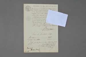 Victor BALTARD (1805-1874), architecte. Pièce signée. 1 p. in-4. Paris, 4 octobre 1844. Il certifie qu'Amaury-Duval a terminé les peintures murales représentant la vie de Sainte-Philomène, « sur le panneau de gauche de la chapelle Ste Philomène à Saint-Merry » [église Saint-Merri à Paris (IVe arrondissement)]. Signé également par Amaury-Duval.