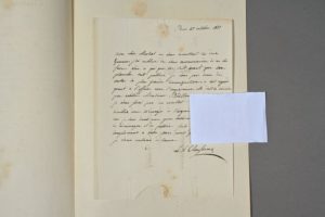 Lambert-Antoine CLAESSENS (Anvers 1762-1830), graveur flamand. Lettre autographe signée à Martial Pelletier, à Amsterdam [Claessens s'était marié avec la veuve du miniaturiste A.J. Pelletier]. 1 p. in-4. Paris, 27 oct. 1822. Adresse au dos. « En vous remettant les deux épreuves, j'ai oublié de vous recommander de ne les faire voir à qui que ce soit avant que ma planche soit publiée. Je vous prie donc de mettre la plus grande circonspection à cet égard ; quant à l'affaire avec l'imprimeur, elle doit se décider par arbitre […]. Veuillez donc m'envoyer de l'argent le plus tôt possible car je suis dans une gêne extrême ce qui m'empêche de déménager et de publier […] ».