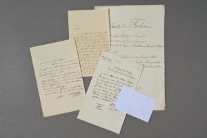 Auguste comte de FORBIN (1777-1841), peintre, directeur général des Musées royaux. 3 lettres autographes signées au peintre Louis Hersent (1777-1860). 4 pp. in-8, l'une à en-tête du directeur général des Musées royaux, une avec adresse au dos. 1819-1823. « Pourriez-vous vous charger de l'exécution d'un petit tableau vivement désiré par une personne qui admire chaque jour davantage votre beau talent. On souhaiterait que le sujet fût tiré des Idylles de Gessner, mais comme on ne pourrait payer que cent louis, ce qui vaut bien davantage, on ne s'attendrait qu'à un très petit tableau d'une ou deux petites figures […]. Ce que je reçois de vous est une trop belle chose pour que j'ose me décider à l'accepter, c'est aussi beau que ce tableau qui vous a placé si haut dans l'opinion et je n'ai rien fait qui puisse mériter un si charmant souvenir. Tout le monde avait pour vous autant de bonne volonté que moi quelque zèle que j'y misse [… Vous me jetez dans un grand embarras […] J'espère aussi que vous songez au tableau que vous nous avez promis (pour le Ministère de la Maison du Roi) qui vous est bien düement commandé), nous en réglerons le prix demain […] ». Dans une 3e lettre, ils conviennent d'un prix de 3000 frs. « Je vous serai reconnaissant de tous les soins que vous voudrez bien donner à cet ouvrage ».