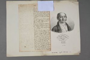 Jean-Nicolas HUYOT (1780-1840), architecte, il participa à la construction de l'Arc de triomphe. Manuscrit autographe, 2 pp. in-folio. Vers 1830. Intéressant rapport sur les dessins d'architecture exposés au Salon. « Parmi les nombreux dessins d'architecture exposés au Salon, il faut distinguer ceux qui n'ont d'autre mérite que d'être bien faits, ceux qui à ce mérite joignent encore celui de l'invention. Ensuite viennent les collections pour les ouvrages qui sont ou seront gravés, et enfin les compositions, projets d'architecture ou restauration d'édifices antiques ». Huyot passe ainsi en revue le travail des différents architectes exposant au Salon. « […] M. Hittorff a fait un fort bon travail sur un petit édifice antique de la Sicile dont il a retrouvé une infinité de fragments dans les fouilles. La restauration de ce petit temps sonique en 3 feuilles mérite une attention particulière sous le rapport de la peinture appliquée à l'architecture. Cet artiste conjointement avec M. Lauth, publie les monuments antiques et modernes de la Sicile, ouvrage dont il y a des dessins intéressants à l'exposition de cette année ». Portrait gravé joint.