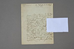 Alexandre LENOIR (1761-1839), conservateur de musée, créateur et administrateur du Musée des monuments français (en 1795). Lettre autographe signée au peintre, collectionneur et marchand d'art Jean-Baptiste Lebrun (1748-1813). 2 pp. in-4. Paris, « ce vendredi 1er mars » [1793]. Adresse au dos avec cachet de cire : « Au citoyen Lebrun, peintre en sa maison rue de Cléry ». Intéressante lettre à Jean-Baptiste Lebrun qui joua un rôle très important lors de la création et l'aménagement du Musée du Louvre. « Je vous salue, citoyen, et vous prie de m'excuser si vous vous êtes transporté plusieurs fois au dépôt sans m'y rencontrer : depuis un certain laps de tems, mes occupations extérieures se sont si multipliées qu'à peine ai-je le tems de prendre ma nourriture. Je me flatte que je trouverai grâce puisque ces absences sont en faveur des arts, et pour le bien de la République. Si dimanche prochain à onze heures vous êtes libre, je me ferai un vrai plaisir de vous montrer les tableaux et monuments que j'ai rassemblés, pour faire un jour un Muséum digne d'une Nation Libre. Faites-moi l'amitié de me procurer en même tems plusieurs exemplaires de votre livre sur le Muséum [Observations sur le Muséum national, 1793], je serai bien aise d'en procurer à plusieurs amis des arts dignes de les apprécier. J'espère aussi être un jour placé parmi les véritables amants de la peinture ». Il signe « Lenoir, garde du dépôt des monuments ».