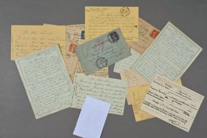 Adrien SCHULZ (1851-1931), peintre paysagiste et céramiste à Montigny-sur-Loing, l'un des fondateurs du Salon d'automne. - 7 lettres autographes signées à son fils Lucien. Bruxelles et Gand, 1910-1912. 7 pp. in-8. Lettres écrites lors de ses séjours en Belgique pour la réalisation d'une commande, probablement un grand décor. « Je suis déjà à la moitié de mon ciel, mais il y aura des retouches à faire une fois la toile couverte […]. J'ai couvert les trois quarts du ciel ; c'est donc encore quatre ou cinq jours de travail pour finir, puis la retouche […]. Je pense que mes tableaux sont bien rentrés du Salon d'hiver […] ». - 7 lettres adressées à Adrien Schulz et à Mme Lucien Schulz par des peintres et galeristes : Jean SOUVERBIE (2), le galeriste MONTAIGNAC, Ch. REITZ, W. MULLER, etc.