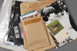 FONDS DE PHOTOGRAPHIES SUR SON ACTIVITÉ CINÉMATOGRAPHIQUE. Important ensemble constitué d'environ 180 photographies et 17 planches-contact + des négatifs. Très bel ensemble de photographies prises lors de tournages, de repérages, avec ses amis du milieu cinématographique, etc. - 93 photos diverses, certaines avec une date au dos « février 90 », « fév. 86 » (cliché Nicole Zeizig), « 11-87 », « Tournage FEMIS 7/4/88 ». - enveloppe contenant 3 grandes photos NB et 2 séries de négatifs du tournage de Grand huit, premier court-métrage de Cyril Collard réalisé en 1982, avec la mention manuscrite : « Photos plateau Danielle Gd 8 » + planche contact couleurs avec négatifs + 3 planches contacts NB avec les négatifs. - Série de 60 photos de repérages à Villeneuve-Saint-Georges, Lognes, Maison-Alfort, Neuilly-Plaisance, Noisiel, Noisy-Champs, Villiers-sur-Marne, etc. principalement dans les stations de RER. - Série de 24 photos prises à Salers (Cantal) - 3 planches contact NB avec négatifs, mention au dos « Collard » et date sur l'enveloppe 17.10.83 - Série de 6 belles photographies NB sur un tournage, 23,5 x 30,5 cm, par le photographe Didier Baverel. - 10 planches contact avec négatifs + 2 grandes photos (40 x 30 cm).