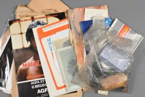 DIVERS PROVENANCE CYRIL COLLARD. - une boite contenant des cartes de visite à son nom. - 7 pellicules photos non développées dont une envoyée par les laboratoires Kodak à son adresse à Versailles. - Série de 7 positifs en couleurs : beaux portraits de Cyril Collard réalisés par le Studio 44 - 7 séries de négatifs - une grande aquarelle (100 x 15 cm), une série de tracts humoristiques, 2 photos abstraites. - 29 photos NB de tournages d'autres films avec Michel Serrault, Charles Aznavour, Jane Birkin, Bruno Cremer, Carole Bouquet, etc. (17 x 24 cm) + 11 reproductions photographiques promotionnelles de l'Histoire de Pierra de Marco Ferreri + 5 d'El Topo de Jodorowsky.