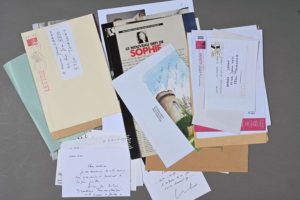 ACTEURS DE CINÉMA. 15 documents (pièces autographes signées, pièces signées, lettres autographes signées, dédicaces) à Gérard Leman. Nombreuses enveloppes. Gérard DEPARDIEU (8), Jean PIAT (7 dont 2 avec photos originales d'amateur).