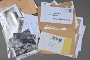 ACTRICES DE CINÉMA. 27 documents (pièces autographes signées, pièces signées, dédicaces) à Gérard Leman. Nombreuses enveloppes. Brigitte BARDOT (enveloppe autographe contenant une photocopie de lettre), Delphine SEYRIG, Nicole GARCIA, Fanny ARDANT (2), Jeanne MOREAU (5), Micheline PRESLE (3), Danielle DARRIEUX (3), Michèle MORGAN (11).