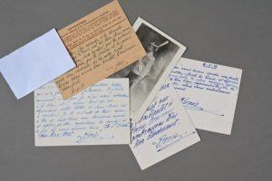 BORIS VLADIMIROVITCH DE RUSSIE (Tsarskoïe Selo 1877-1943), grand-duc de Russie, cousin germain de Nicolas II. 4 cartes autographes signées à Bob Léry (Lacroix). 4 pp. in-12 oblong. Bellevue, château du Sans-Souci, juin 1941 - Janvier 1943. Émouvante correspondance de fin de vie. « […] L'hiver fut très dur […]. C'est vrai nous avons vendu une partie de nos meubles - faute de braise et espérons vendre Bellevue pour la même raison. Espérons que vous allez tous bien, aspirant à la joie de te revoir bientôt […]. La nuit du 4 au 5 mars a été atroce. Suis heureux que tes affaires s'arrangent […]. Si j'écris rarement, c'est que je n'ai rien intéressant à te dire. Nous avons loué ici un charmant petit hôtel et Sans-Souci est à vendre. Je te souhaite de tout cœur à toi et aux tiens une heureuse année et espère qu'elle apportera la paix et la joie de nous réunir tous […] » Il est joint une reproduction photographique du grand-duc Boris.