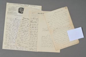 Alfred Henry LOVE (Philadelphie 1830-1913), pacifiste américain, fondateur de l'Universal Peace Union. 2 lettres autographes signées à Charles Lemonnier (1806-1891), militant pacifiste et saint-simonien, président de la Ligue Internationale de la Paix et de la Liberté. 4 pp. in-8 et 2 pp. in-4. L'une à en-tête et vignette de l'Universal Peace Union. Philadelphie, mars-avril 1881. Sur leur action commune pour une paix éternelle entre les États-Unis et la France. Il vient de recevoir l'appui du président Hayes [président des États-Unis de 1877 à 1881] qui a bien voulu signer sa pétition. « Now, my dear friend, you must lose no time in getting minister Noyes to act for the 4d of March President Garfield was inaugurated and he has appointed Levi P. Morton minister to France. We expect he will aid us as much as President Hayes, but do hard minister Noyes complete the glory of his mission by at least, laying the foundation of an agreement to arbitrate any & all difficulties that out two Republics cannot settle amicably and never to go to war each other, no matter what the provocation may be. We all admire and honor you for your interest & great energy […]. I want to answer the questions put to me, by showing that you, with our aid, and that of the Hayes administration have really done some good. Thank minister Noyes for me & beg of him to make one last, bold and sure act for Peace. The association for the Reform & Codification of the Law of Nations will meet in Cologne august 16th 1881. I am one of the officers of the International Code Commettee which acts with this association. I cannot attend. Will you as our vice President represent the Universal Peace Union and speak for us the word of Disarmament and arbitration? Implore them to begin this work. Our annual meeting of the Universal Peace Union will be held either in may or June. Please write and have your society write a letter to us. We are greatly encouraged here & hope you are […] ». Marie et Amand Goegg seront présents à leur meeting. Il disserte longuement sur Theodore Stanton et sa famille. On joint : brouillon de réponse de Charles Lemonnier à Alfred H. Love (3 pp. ½ in-8, Genève 12 mai 1881), accompagné de la traduction de la lettre du président Hayes à Edward F. Noyes, ministre plénipotentiaire à Paris, introduisant Charles Lemonnier « qui s'occupe d'un projet de tribunal international d'arbitrage, et qui est convaincu qu'un certain arrangement permanent peut intervenir entre les États-Unis et la France, et ouvrir ainsi la route à d'autres nations qui s'uniraient pour la même fin ».