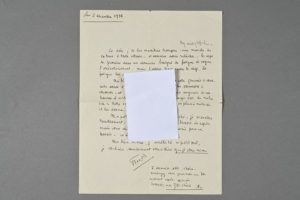 François MITTERRAND (1916-1996). Lettre autographe signée à Marie-Louise Terrasse, dite Catherine Langeais. 1 p. in-4. [Fort d'Ivry]. 2 décembre 1938. Mitterrand épuisé par les exercices de son service militaire. « My delightful, Ce soir, j'ai les membres rompus : une marche de 20 kms à toute vitesse, et exercice sans relâche. Le corps se promène dans un domaine baigné de fatigue où vogue l'anéantissement, mais l'esprit tient encore le corps, la fatigue lui sert de l'ivresse. Ma bien-aimée, j'ai pensé toute cette journée à vous. Cette soirée d'hier, je la mets déjà dans les souvenirs à conserver, et à revivre. Elle me fait bien augurer de ces heures d'intimité que nous aurons chaque soir de notre vie : notre amour s'identifie de plus en plus à notre vie, il lui donne son sens. Ma petite fille, je vous écris couché. Je m'endors terriblement. Rarement j'ai eu plus besoin de repos. Mais vous dire mon amour ne contrarie pas ce besoin, ce désir de paix. Ma bien-aimée, j'arrête là ce petit mot. Je voulais seulement vous dire que je vous aime. François. A demain soir, chérie. Arrangez-vous pour avoir un bon moment après-demain. Bonsoir, ma Zou chérie. Fr. » Marie-Louise Terrasse dite Catherine Langeais (1923-1998), avait rencontré le 28 janvier 1938, lors du bal de l'École normale supérieure, François Mitterrand, avec qui bien qu'âgée de 15 ans seulement, elle se fiança. Mitterrand écrira plus de 300 lettres à celle qu'il surnommait Zou.