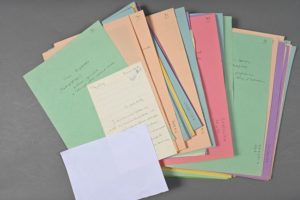 [Jean-Marie PAUPERT (Châlons-en-Champagne 1927-2010), écrivain catholique, prix Henri-Dumarest (1962) et Broquette-Gonin (1938) de l'Académie française ; il fut aussi éditeur chez Fayard ; proche du père Chenu et du concile Vatican II, il s'oriente ensuite vers des positions plus traditionnalistes ; il a publié une vingtaine de livres]. Plus de 500 lettres adressées à lui, de la fin des années 40 aux années 90. Dans un grand carton + une grosse boite d'archives. Abondante correspondance adressée à Jean-Marie Paupert : lettres d'écrivains, journalistes, personnalités du monde catholique, éditeurs, lecteurs, congrégations religieuses, universitaires, théologiens, philosophes, historiens, etc., avec de nombreux doubles de réponse. Nous relevons les noms de : abbé PIERRE, Frère ROGER (Taizé), Henri de LUBAC, Maurice SCHUMANN, Pierre MENDÈS-FRANCE, Mgr Roger ETCHEGARAY, Henri QUEFFÉLEC, Michel de SAINT-PIERRE, général de BÉNOUVILLE, Gilbert CESBRON, Françoise GIROUD, Marcel JULLIAN, Jean-Michel DI FALCO, Maurice BARDÈCHE, François FOUCART, Pierre CHAUNU, Marie-Dominique CHENU, Michel de JAEGHERE, Henri GOUHIER, cardinal François MARTY, Thierry PFISTER, Christine BOUTIN, Henri GUILLEMIN, Maurice DRUON, René MINGUET, Jean-Claude SERVAN-SCHREIBER, Armand LANOUX, Claude ALPHANDÉRY, Bernard PRIVAT, Jacques FAUVET, Wladimir d'ORMESSON, Jean MADIRAN, Louis PAUWELS, Maurice CLAVEL, Raymond Léopold BRÜCKBERGER, Yves GOUGAR, cardinal TISSERANT, François BLOCH-LAINÉ, Robert ABICHARED, Jean-Marie LE PEN, François HOUANG, Daniel LAGACHE, Thomas MOLNAR, Michel RACHLINE, Gustave THIBON, Françoise VERNY, Philippe de VILLIERS, Jean WAHL, etc.
