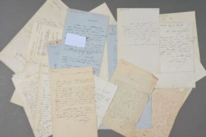 François PONSARD (Vienne 1814-1867), poète et dramaturge, académicien. - 23 lettres autographes signées, écrites de Vienne, Nice et Paris, adressées à Alexandre Dumas fils, Michel Lévy, Altaroche, le directeur de l'Odéon, Berthet, Leroux, etc. - Lettre signée conjointement par les membres du comité formé pour l'érection d'un monument à la mémoire de François Ponsard, à Vienne sa ville natale. Ont signé : le prince NAPOLÉON, Eugène VIOLLET-LE-DUC, Émile AUGIER, Camille DOUCET, Georges MOREAU-NÉLATON et Jules SANDEAU. « Les amis du poète ont à cœur de ne pas rester étrangers à cet hommage. Ils ont formé, sous la présidence de son Altesse Impériale Mgr le Prince Napoléon, un comité chargé de recueillir les souscriptions à Paris, et de décider, de concert avec le comité Viennois, les questions d'art relatives au monument. Nous espérons que vous nous saurez gré de vous offrir une occasion de donner à notre illustre ami un dernier témoignage d'attachement et d'admiration […] ». Paris, nov. 1867, 1 p. ½ in-4. On joint une lettre de son épouse et une carte de son fils représentant la statue de François Ponsard devant l'hôtel de ville de Vienne.
