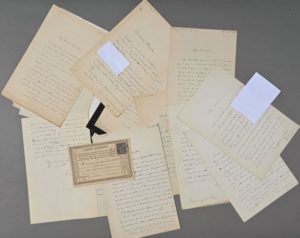 Jules SOURY (1842-1915), philosophe et historien des neurosciences à la Sorbonne, théoricien du racisme et de l'antisémitisme. 14 lettres et 2 cartes autographes signées à Georges Charpentier. 1877-1894. 18 pp. in-8. Correspondance sur ses travaux littéraires (sur Julie de Lespinasse, madame du Barry, etc.), ses publications, les personnalités du monde politique et littéraire qu'il côtoie (Jules Ferry, Gambetta, Paul Bert, ou encore, Victor Hugo) : « Je ne connais point personnellement M. V. Hugo ; jamais je ne lui ai écrit ou envoyé de livres. Il est pour moi un très grand poète lyrique, et il l'est d'autant plus que, sur tout le reste, c'est un pur aliéné. Vous reconnaissez la thèse, qu'après Moreau de Tours et la plupart des aliénistes et psychologues contemporains, j'ai appliqué à Jésus. Il est fâcheux qu'il ne soit pas permis de dire de M. Hugo ce qu'on peut dire de Jésus. Réfléchissez encore un peu, cher monsieur, je vous prie ; la responsabilité tombe toute entière sur moi seul, et vous savez que je ne recule guère. Après quoi, si vous tenez absolument à ménager le poète que je n'admire pas moins que vous, et que je ne puis songer à insulter, puisque je l'appelle justement dans cette phrase « homme de génie », - si vous y tenez absolument, comme je me ferais scrupule d'indisposer un galant homme tel que vous, cher monsieur, supprimez les 8 mots : « à M. Hugo qui n'est guère moins fou ». Quant aux 10 précédents, rayés sur l'épreuve, ils ont paru dans le Temps, sans scandale aucun, et n'offrent aucun danger […] ».