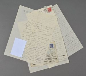 Lucie DELARUE-MARDRUS (1874-1945), poétesse et romancière. 3 lettres autographes signées à André Fraigneau. 4 pp. ½ in-4, en-têtes à son adresse du quai Voltaire. 1936-1938. Enveloppes. Belle correspondance littéraire après la lecture de 3 de ses livres. « J'ai pu lire enfin Les Voyageurs transfigurés. Étant toujours en retard de 150 bouquins, le résultat est celui que vous pouvez constater aujourd'hui. J'ai beaucoup goûté la subtilité, le frémissement caché de votre livre, et cet étonnement des Français, les seuls qui sachent voir, comme vous le dites avec tant de profondeur. Et comme c'est beau, ce mot de l'architecte : « Le premier angle ! ». Vous avez vu la Grèce avec les mêmes yeux que moi. Mais c'est de vous que j'apprends que les Héllènes contemporains renient le passé, ce qui ne m'étonne pas et me satisfait assez pour l'homme du passé ». Puis deux autres lettres dithyrambiques après la lecture du Camp Volant puis de La Grâce humaine. « Mon dieu que vous écrivez bien, quelles continuelles trouvailles de poète dans un style qui reste (?) et logique, et comme votre livre est, sans erreur possible, jeune et homme. Et, vous aussi, vous l'avez découvert, ce procédé qui donne la vie à un roman : l'unité, c'est à dire un seul personnage dans la peau duquel on entre et qui devient votre moi jusqu'à la dernière page […] ».