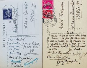 Georges POMPIDOU (1911-1974). 2 cartes postales cosignées, adressées à André Fraigneau. …