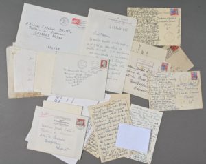 [Caroline DUDLEY-DELTEIL (1890-1982)]. Une quinzaine de lettres adressées à elle. Cecily MACKWORTH, André BERRY, Christian MOUNIER, Jean-Marie DROT, Dorothea DUDLEY HARVEY, Josep FONTBERNAT, une lettre du 17 août 1927 signée « T.D. » écrite de Chicago (évoquant le procès Sacco & Vanzetti et l'écriture d'une pièce « The Genius »), une lettre signée « Michèle » concerne la vente d'un Brancusi, deux lettres de la galerie Claude Bernard concernent la vente, par l'intermédiaire de Sonia Delaunay, d'œuvres de Calder, Pascin et Gruber, etc. Il est joint un décompte des éditions Grasset pour les droits d'auteur de Joseph Delteil (1980).