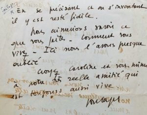 Pierre SOULAGES (1919-2022), peintre. Lettre autographe signée à Joseph et Caroline Delteil. 2 pp. in-4. 1er janvier 1954. « Chers amis, nous ne désespérons pas de vous voir un jour que nous voudrions prochain. En attendant nous vous envoyons nos meilleurs vœux pour cette année. Nous aurons sans doute de vos nouvelles par F. Cariès que nous espérons voir ici. Nous avons été très heureux de lire ses poèmes que nous avons aimé : ils tiennent bien ce que promettait ce que nous connaissions déjà de lui. En se précisant et en s'inventant il y est resté fidèle. Nous aimerions savoir ce que vous faites, comment vous vivez. Ici nous l'avons presque oublié. Croyez Caroline et vous-même à notre très réelle amitié qui est toujours aussi vive. Soulages ». [François Cariès (1927-2015), poète et romancier montpelliérain].