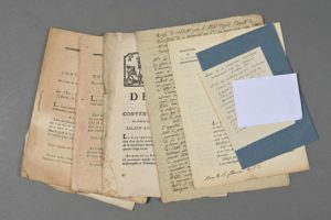 CALENDRIER RÉPUBLICAIN. 5 documents. - Décret de la Convention nationale du 4e jour du mois de frimaire l'an seconde de la République françoise sur l'Ère, le commencement & l'organisation de l'année, & sur les noms des jours et des mois. 32 + 29 pp. + tableau dépliant. La seconde partie, chiffrée 25 à 59 est constituée de l'« Annuaire ou calendrier pour la seconde année de la République française » avec le détail des mois et des jours. - Décret de la Convention nationale du 5 oct. 1793 concernant l'Ère des François. - Décret de la Convention nationale du 2 janvier 1793 relatif à l'Ère de la République - Lettre circulaire du ministre de la Justice + Bulletin des Lois contenant un arrêté pour la stricte exécution du calendrier républicain (an 6) - Manuscrit signé « les vicaires généraux du diocèse » (4 pp. in-4) : « Règle de conduite pour les fidèles d'après l'arrêté du Directoire du 4 germinal an 6 qui défend et commande certains actes qui regardent les jours décadaires […] ».