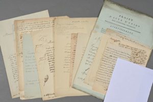 ÉTATS GÉNÉRAUX. 17 lettres de constituants. Joseph-Louis Robert de Lignerac duc de CAYLUS, Étienne-François de BOULOGNE, Antoine-Éléonore-Léon Leclerc de JUIGNÉ (archevêque de Paris), Jean-Baptiste-Charles CHABROUD (+ imprimé de 7 pp. in-folio « Projet d'acte d'union des citoyen français »), Louis-Pierre Nolasque de Balbes de Berton marquis de CRILLON, Mathieu de MONTMORENCY (avec portrait gravé en couleurs), Antoine-Louis-Claude DESTUTT DE TRACY (écrite durant les États-généraux), Henri-Cardin-Jean-Baptiste d'AGUESSEAU, Pierre-Hubert ANSON, François de BONAL, Pierre-Marc-Gaston de LÉVIS, cardinal de LA ROCHEFOUCAULD, Jacques-Joseph BESSE, Jean-Baptiste Nompère de CHAMPAGNY, François-Antoine de BOISSY-D'ANGLAS, Jean-Nicolas DÉMEUNIER, Pierre-François-Balthazar Genech de SAINTE-ALDEGONDE.