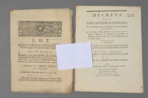 [PANTHÉON]. 2 imprimés. « Loi relative aux honneurs à décerner aux Grands Hommes jugés tels par le corps législatif » (10 avril 1791) et « Décrets de la Convention nationale des 2 & 4 octobre 1793, qui accordent à René Descartes les honneurs dûs aux grands Hommes & ordonnent de transférer au Panthéon français son corps & sa statue faite par le célèbre Pajou ».