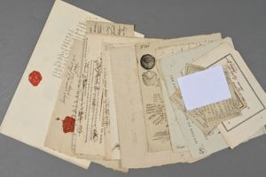 SECTIONS RÉVOLUTIONNAIRES DE PARIS. 26 documents. - 1 carte civique (sur parchemin) et 4 cartes de sûreté, dont trois émises par la section des Droits de l'homme + une carte de « citoyen actif » de la section des « enfans rouges ». - 21 certificats (résidence, prestation de serment) émis par différentes sections (du Marais, de l'Indivisibilité, des Gardes françaises, des Amis de la Patrie, de l'Oratoire, des Piques, de la Fontaine de Grenelle, de Pelletier, de Bondy, de la Bibliothèque, de la Halle aux blés, de Popincourt, de la Butte des moulins, du Muséum). Signatures, cachets de cire.