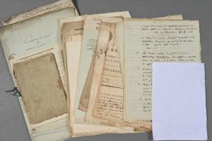 DIVERS RÉVOLUTION. Une quarantaine de pièces. - 4 certificats de présence et passeport (sections parisiennes) - 16 imprimés : Recueil des actions héroïques et civiques des républicains français par Léonard Bourdon (an 2), Adresse des citoyens de Paris à Tous les François (1790, forte mouillure), Acte du Corps Législatif concernant l'auteur du journal intitulé l'Ami du Roi (1792), Arrêté du Comité de Salut Public du 9 thermidor an 2 qui autorise la vente des couvertures fines de coton et de toutes celles de luxe, Mercure universel du 2 avril 1793, Instruction pour les surveillants des chaussées, Loi relative à l'instruction de l'Assemblée nationale sur la Constitution civile du Clergé (26 janv. 1791), etc. - 12 documents divers : lettres du consul à Ancône, du directeur des Vivres, du Comité de Judicature, copies de lois et décrets, etc. - 3 manuscrits : « Déclaration d'un citoyen concernant la liquidation des charges offices et emplois » (18 pp. in-4), « Discours sur la patriotisme » (38 pp. in-12) et « Extrait d'une brochure intitulée Le Prophète Jonas imprimée à Anspach en juillet 1793 ». - Dossier d'une dizaine de pièces dont 2 avec beau cachet en cire du district de l'Oratoire.