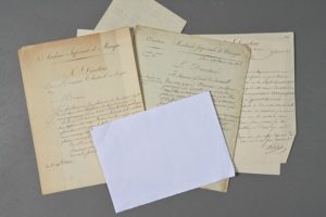 ACADÉMIE IMPÉRIALE DE MUSIQUE. Louis-Benoit PICARD (1769-1828), dramaturge et comédien, directeur de l'Académie Impériale de Musique (1807-1816). Ensemble de 4 lettres signées (ou autographes signées), 3 pp. in-4 et 1 p. in-8, en-tête de l'Académie Impériale de Musique. Paris, 1808-1815, 1 adresse au dos. A Godart-Vaudricourt répondant à sa lettre (jointe) au sujet de sa pièce Les Filles à marier ; à Chestenet l'informant que son opéra en 3 actes Ceix et Alcyone a été refusé par le jury car l'action n'était pas assez claire et « le stile en étoit peu soigné » mais que cependant « plusieurs morceaux annonoient de la verve ». À Millin refusant une augmentation à son fils, « La dépense de l'orchestre est considérable & tous les ans on demande des réductions […] Je ne veux pas non plus accroître la dépense […] », etc.