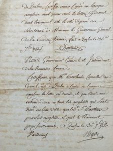 AMÉRIQUE - CANADA. Pièce autographe signée par Joseph PERTHUIS (Québec 1714-1782), négociant, conseiller au Conseil supérieur de Québec et commissaire des prisons royales ; également signée par Pierre de Rigaud de VAUDREUIL (1698-1778), dernier gouverneur de la Nouvelle-France et François BIGOT (1703-1778), intendant de la Nouvelle-France. 4 pp. in-folio. Québec, 30 septembre 1755. Exceptionnel et rarissime document relatif un épisode important de l'histoire de la Nouvelle France, la lettre de Robert Stobo (1726-1770) du 28 juillet 1754 au gouverneur Dinwiddie invitant les Indiens à la prise du fort Duquesne. Lettre en duplicata d'époque certifiée par les principaux dirigeants de la Nouvelle-France Vaudreuil, Bigot et Perthuis. Au début d'avril 1754, le gouverneur Dinwiddie, devant l'avancée des Français, dépêcha le colonel George Washington à la fourche de l'Ohio (aujourd'hui Pittsburgh) pour en assurer la garde. Stobo, qui avait été promu capitaine le 5 mars, suivit la petite armée environ un mois plus tard, à la tête d'une compagnie de troupes de la Virginie. À la mi-avril, une troupe composée de Français, de Canadiens et d'alliés indiens, sous le commandement de Claude-Pierre Pécaudy de Contrecœur, avait descendu en canot la rivière Alleghany ; après avoir délogé quelques douzaines d'Anglais d'un fort qu'ils étaient en train d'ériger à la fourche de la rivière, ils entreprirent la construction du fort Duquesne. Le régiment s'avança alors vers le sud, et cerna l'armée de Washington. En capitulant, aux mains des Français, Washington leur remit deux de ses capitaines comme garantie que les 21 prisonniers français dont il s'était emparé plusieurs semaines auparavant seraient libérés. Les deux otages étaient Jacob Van Braam, Hollandais de naissance, et Robert Stobo. Stobo retrouva au fort Duquesne huit membres de son régiment que les Indiens avaient fait prisonniers après la bataille. Il estima que cet acte violait les conditions de la capitulation et qu'il se trouvait ainsi dégagé de ses obligations comme otage. Il écrivit une longue lettre à Dinwiddie, le 28 juillet 1754, lui conseillant de ne pas rendre les prisonniers français et l'exhortant même à s'emparer dès l'automne du fort en question. C'est cette fameuse lettre dont il est question ici. Cette lettre fut remise au général Braddock, mais après sa défaite à la bataille de la Monongahela en juillet 1755, elle tomba aux mains des Français. Strobo fut jugé par une cour militaire que présidait le gouverneur général Vaudreuil, qui le condamna à être décapité. Cependant, la cour de Versailles suspendit la condamnation. Nous avons donc ici un duplicata strictement contemporain de la fameuse lettre de Strobo - puisqu'elle date du moment même de sa découverte par les Français, établie par les autorités françaises et certifiée par le gouverneur général Vaudreuil. Figurent en effet, les mentions d'authentification : « Je soussigné conseiller au Conseil Supérieur de Québec, certifie avoir copié en langue angloise mot pour mot la lettre cy-dessus dont l'original est resté déposé au secrétariat de Monsieur le Gouverneur Général de la Nouvelle France, fait à Québec le 30 7bre 1755. Perthuis ». Puis, en dessous : « Nous gouverneur Général et Intendant de la Nouvelle France, certiffions que Mr Perthuis conseiller au Conseil supérieur de Québec a copié en langue angloise la lettre cy dessus, et que nous avons entendu dire à tous les anglois qui sont venu en cette ville que ledit Sr Perthuis parloit anglois, et qu'il le traduisoit parfaitement. A Québec 30 7bre 1755. Vaudreuil. Bigot ». IMPORTANT DOCUMENT HISTORIQUE SUR L'HISTOIRE DU CANADA, qui présente quelques variantes (en particulier des noms) avec le duplicata conservé aux archives de l'Université de Pittsburgh. Dans son ouvrage, The Most Extraordinary Adventures of Major Robert Stobo (1965), Robert C. Albert recense 5 copies de cette fameuse lettre : deux à la bibliothèque Darlington de l'Université de Pittsburgh, une aux archives de l'État à Harrisburg (Pennsylvanie), une dans la bibliothèque de M. George Spannuth à Pottsville (Pennsylvanie), et une dans les anciennes archives du palais de justice à Montréal. Mais selon les études faites dans les années 60 par l'expert new-yorkaise Emily Driscoll, l'original a disparu ou est entre les mains d'un propriétaire privé, car la lettre retrouvée à la mort du général Braddock (collection Darlington), était une copie. Nous avons donc ici un sixième exemplaire, inconnu jusqu'à ce jour. « Sir, The Indians are greatly allarmed at a report said to be brought up by an Indian named Tusquerora John. He reports that the Half-King, Manaquehicha and a Shanoes King &c., to the number of 37, were confined by the English and carried as prisoners. That John Mainos, alias Jack Cork Montiere's Company, told him so soon as they got them to the inhabitants,