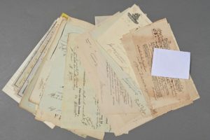 CONNAISSEMENTS & ROULAGE. - 17 connaissements maritimes XVIIIe-XIXe : Morlaix à Bordeaux (pour des toiles, 1736), Bordeaux à Saint-Domingue (vin blanc, 1769), Rochefort à Isigny (1769), Rouen à Stettin (« vin blanc de Champagne », 1868), etc. - 10 bordereaux de roulage XVIIIe-XIXe dont bouteilles de vins blancs, de Mâcon à Paris, pour le maréchal de Stainville (1789), etc. On joint une dizaine de d'autres bordereaux de transport (dont par chemin de fer), XIXe.