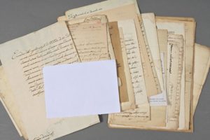ITALIE. Environ 50 documents, XVIe-XIXe. Lettres et pièces signées par : John Edward ACTON (1788, au comte de Ludolf à Constantinople), Alvaro de SAUDE gouverneur du Milanais pour Philippe II (Milan 1571, au sujet de l'ouverture et des réparations du canal de Martesana), Francesco MARTELLI évêque de Reggio (1575), Leopold Angelo VALENZIANI, Salvator CHERUBINI (dessinateur toscan, 2 lettres), cardinal Fabrizio SAVELLI (au cardinal de Gondi, 1657), Johann Joseph comte de WILZECK (Mila 1796 + 3 brouillons de réponse de Genorini), Giacinto DELLA TORRE archevêque de Turin, Salvatore BLASI (1785), Giuseppe Antonio CAVALIERI (1784), l'historien d'art et numismate Ireneo AFFO (Parme, 1783), le collectionneur et écrivain Angelo Maria BANDINI (cachet de collection), le comte GUICCIARDINI (1815), princesse TRIVULZIO (Codogne 1744), Giuseppe DASSI, Luigi LAZZATI, le sculpteur Eugenio BARONI, cardinal BRASCHI (1815), Ottavio Sanseverino d'ARAGONA (Amsterdam 1709, intéressante sur la campagne de Flandre), Vito NUNZIANTE (Naples, 1835), etc. - manuscrit tiré des Mémoires de Goldoni, nomination militaire par Victor-Amédée (1795), lettre adressée au roi des Deux-Siciles (Raguse, 1709, adresse au dos, sceau sous papier), lettres des armateurs Sauveur et Lazare RECANATI (1751, 4 pp. in-4, commerce avec la Nouvelle Espagne, commerce du corail, etc.), lettre écrite de San Marco in Lamis dans les Pouilles, 1614), papier vierge avec vignette de la République cisalpine, diplômes et brevets, etc. ainsi qu'une longue lettre signée (Alberini ?) dans laquelle il est question de la guerre contre les Turcs, et de la bulle Unigenitus (Rome, 1716, 8 pp. gd in-folio). Italie : voir également n°824, 826 et 869.