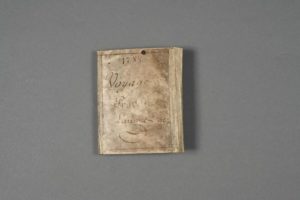 JOURNAL DE VOYAGE. Carnet manuscrit in-16, dans une reliure en parchemin à recouvrement, titre …