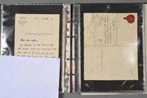 LIBRAIRIE ET COMMERCE DU LIVRE. Un classeur contenant environ 35 documents XVIIIe-XIXe. Lettre à …