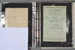 LIBRAIRIE ET COMMERCE DU LIVRE. Un classeur contenant environ 35 documents XVIIIe-XIXe. Lettre à Malesherbes pour interdire l'impression d'un manuscrit du duc de La Vallière (1759), prospectus, souscriptions, lettre du directeur général de l'Imprimerie et de la Librairie (baron de Pommereul, à Treuttel & Wurtz, sur le commerce du livre, 1811, 3 pp. in-4), quittance de souscription pour les œuvres de d'Aguesseau (1761), loi relative aux bibliothèques, imprimé de 1792 « arrêté pris par les ouvriers de l'imprimerie de M. Panckoucke » (4 pp. in-8), lettre adressée au relieur Dubuisson (1759, instructions pour la reliure d'ouvrages, découpe dans le texte), lettres au sujet de la vente de livres, lettres et factures de relieurs et de librairies, etc. Ainsi qu'un imprimé « Mémoire des libraires associés à l'Encyclopédie sur les motifs de la suppression actuelle de cet ouvrage » (1758, 4 pp. in-4, malheureusement incomplet des pages centrales 3 à 6).
