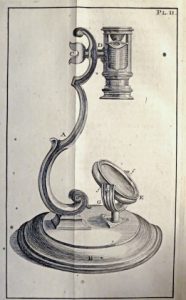 Eerste uitgave van de vertaling (1ste Engelse uitg. : 1742) van dit tractaat door de natuurkundige Henry Baker (1698-1774), geïllustreerd met 14 uitslaande platen betreffende de bouw van de microscoop en microscopische waarnemingen. Op de laatste bladzijde treft men een korte titellijst van uitgaven op het gebied van de natuurkunde te koop aangeboden door Tirion. # Nissen, ZBI 202; # Wellcome I-88. Biigevoegd : Description et usage des téléscopes, microscopes, ouvrages et inventions de Passemant, ingénieur du Roi, au Louvre, à Paris. S.l., s.n., s.d. In-12° : [2]-94-[2] pp.; 1 uitslaande pl. (wormgaatjes in ondermarge van laatste bln., herkomststempels op schut- en titelblad); genaaid. Achteraan treft men een prijslijst van de microscopen en telescopen die Passemant te koop aanbiedt. ^ Édition originale de la traduction d'un traité sur le microscope illustrée de 14 planches. Plein veau de l'ép. Une publication brochée donnant la description des microscopes et des télescopes fabriqués par l'ingénieur Passement, avec liste des prix, est jointe.