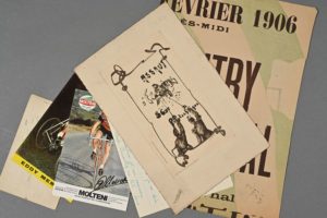 SPORT. - [Cross]. Affiche « 2e cross country international » du Dimanche 4 février 1906. 62 x 42 cm (une déchirure sur un côté avec manque de papier). - [Escrime]. Belle eau-forte sur « grand vélin d'arches » : « Assaut d'escrime St Cyr Polytechnique » de 1905. 24,5 x 16 cm. - [Cyclisme]. 2 L.A.S. et photo dédicacée du coureur cycliste belge Émile Masson junior (1915-2011) + carte postale signée par Eddy Merckx. - [Boxe]. Carte postale A.S. de Georges Carpentier « à l'espoir de la Guadeloupe, à mon successeur, à invincible Juanito, en toute amitié ».