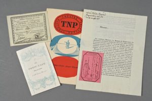 THÉÂTRE. - Carte d'abonnement au Grand-théâtre de Lyon (1812) + une autre de 1820 épinglée à une lettre circulaire. - [Tristan Bernard]. Coupon nominatif pour Tristan Bernard pour une « baignoire » au Théâtre de l'Athénée, pour une de ses pièces (Le Danseur inconnu), 1909. + une carte pour la répétition générale du Petit café de Tristan Bernard (1911). - TNP de Jean Vilar. « Revu-programme » du 1er trimestre 1952.