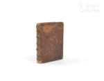 BLAEU (Willem Jansz). Institution astronomique de l'usage des globes et spheres célestes et terrestres... A Amsterdam, chez J. & C. Blaeu, 1642. Petit in-4, [8] f., 277 p., fig., veau brun époque, dos à 5 nerfs, pièce de titre (rel. usée et déformée, coiffes arrachées ; défauts intérieurs dont mouillure claire et piq. de vers en marge, en l’état). Première édition en français de cet important traité initialement paru en 1620. Elle se compose de deux parties, la première, suivant l'hypothèse « impropre » de Ptolémée, qui veut que la terre soit immobile ; la seconde, selon l'intention de Copernic qui tient que la terre est mobile. L’illustration consiste en figures gravées sur bois dans le texte, dont une au titre de la seconde partie. Provenance : étiquette ancienne armoriée au titre. (Houzeau & Lancaster 9714).