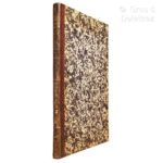 [Premier Empire]. DURAND-BRAGER (Henri). Sainte-Hélène. Translation du cercueil de l'Empereur Napoléon à bord de la frégate la Belle-Poule. Histoire et vues pittoresques de tous les sites de l'île se rattachant au Mémorial de Sainte-Hélène et à l'expédition de S. A. R. le prince de Joinville. Paris, Gide, 1844. Grand in-folio (env. 60 x 41 cm.), [3] f., 55 p., pl., demi-veau brun moucheté époque, dos lisse à décor romantique, titre doré, étui marbré (dos passé et frotté, coiffes restaurées, fente en queue du mors sup., frott. aux bords de l’étui, très discrètes rousseurs marginales sur qq. pl.). Important ouvrage dédié à la mémoire de l’empereur Napoléon Ier, conçu et illustré par Henri Durand-Brager (1814-1879), peintre orientaliste et de marine, et qui prit part en 1840 à l’expédition chargée de rapporter de Sainte-Hélène le corps de Napoléon. L’illustration se compose de 29 planches lithographiées, dont 5 portraits de figures notables telles que le prince de Joinville, le général baron Gourgaud, et le comte de Las Cases. On y trouve également 24 vues de divers lieux à James Town et environs, à Sainte-Hélène. Les scènes remarquables incluent la Pointe de Sugar-Loaf, la Cascade de Briars, et des sites importants comme Ladder Hill et Longwood. La série représente aussi les événements de la cérémonie à James Town, l'embarquement et le départ de Sainte-Hélène. Les portraits ont été dessinés et lithographiés Leveille et G. Staal, les vues d'après les peintures de Durand-Brager ont été lithographiées par lui-même, Delaplante, Eugène Cicéri, Sabatier et autres. Quelques erreurs de numérotation sont notées à la table des planches, la planche 17 a été supprimée (elle n’a jamais paru), planche 22 porte le no. 24, et planche 24 porte le no. 22.
