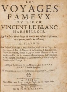 [Reliure aux armes]. LE BLANC (Vincent) ; BERGERON (Pierre). Les voyages fameux du sieur Vincent …