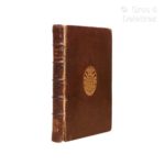 [Reliure aux armes]. LE BLANC (Vincent) ; BERGERON (Pierre). Les voyages fameux du sieur Vincent Le Blanc, Marseillois A Paris, chez Gervais Clovsier, 1658. 3 parties en 1 vol. in-4, [1] f. (titre), 202-[5] p. ; 147-[4] p. ; 109-[3] p., basane havane mouchetée d’époque, dos à 5 nerfs, titre doré renouvelé, pièces d’ armes en queue du dos, armes dorées aux plats, double filet doré sur les coupes, roulette dorée aux chasses, tranches mouchetées rouge (défauts dont plat sup. presque détaché, coiffes découvertes, mouillure claire en début de vol., brunissures, dernier f. défraîchi et taché). Nouvelle édition de ce curieux ouvrage composé d’après les manuscrits de Vincent Le Blanc (1553-1633), voyageur marseillais. Les descriptions géographiques qu’il renferme sont accompagnées de commentaires de toute nature, où se mêlent les observations vérifiables et les considérations imaginaires. Intéressante provenance qui témoigne de l’intérêt que cet ouvrage a suscité en son temps, et encore au-delà : la reliure porte les armes de Gabriel-Jérôme de Bullion de Bonnelles (1695-1752), maître de camp du Régiment de Provence, prévôt de la ville de Paris, puis maréchal de camp (OHR, 640, variante non reproduite) ; l’exemplaire passe ensuite dans la bibliothèque de l’abbé André Morellet (1727-1819), économiste, proche des philosophes et collaborateur de l’Encyclopédie (ex-libris gravé).