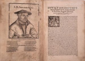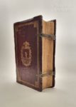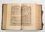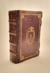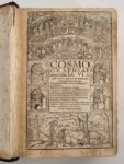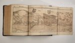 [Livre du XVIe s.]. MUNSTER (Sebastian). Cosmographiae universalis lib. VI. Basilea, Heinrich Petri, 1554 (septembre). Un fort volume in-folio (335 x 215 mm), plein maroquin bordeaux de l'époque, dos à 4 nerfs orné de caissons avec lion couronné debout et fleur de lys, figure héraldique au plat sup., frises et titre dorés au dos, 2 fermoirs (défauts à la reliure dont mors restaurés, frott. et accros sur les coupes, 2 cartes en déficit (n° 1 & 2), des défauts dont titre-frontis. restauré, trous de vers minuscule parfois des travaux touchant le contenu notamment les cartes n°3-8, et p. 970-1132 dans la marge inf. atteignent les réclames et un bois p. 1002, marge lat. courtes sur la gravure p. 662-663, taches p. 674-675, les vues dépl. brunies et froissées ). Deuxième édition latine du célèbre ouvrage de Münster, considéré comme l'un des plus célèbres cosmographes de la Renaissance. Le succès de cet ouvrage est dû en partie aux belles gravures, dont les auteurs sont Hans Holbein le Jeune, Urs Graf, Hans Rudolph Manuel Deutsch et David Kandel. Il se compose d’un titre frontispice gravé sur bois avec le portrait de Münster au verso, 12 feuillets préliminaires, 12 cartes à doubles pages (sur 14 cartes) dont la carte 14 Carte des nouvelles îles, que l'on appelle occidentales et indiennes selon divers critères et 1162 pages de texte richement illustrée de nombreuses vignettes gravées sur bois dans le texte, dont 37 à double pages représentant des vues de villes emblématiques telles que Trèves, Paris, Genève, Rome, Venise, Florence, Bâle, Colmar, Constantinople, Jérusalem, Cologne, Choures, Augsbourg, Heidelberg, Frisingue, Francfort-sur-le-Main, Vienne... Collation: [12] f. (dont titre-frontis.), 12 cartes à double page (sur 14 ; num. 3-14), 1162-[16] p. (réparties dans le volume), [1] f. (colophon au recto et marque typo. au verso). (Sabin 51381).