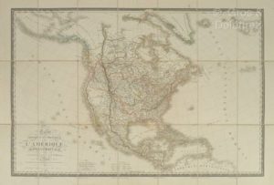[Monde]. BRUE (Adrien Hubert). [4 cartes d’Océanie, d’Afrique et d’Amérique]. A Paris, chez J. Goujon, 1821, 1822, 1825 et 1826. 4 cartes (env. 64 x 96 cm.), entoilées, pliées (22 x 14 cm.), sous étui cartonné époque (étui fendillé et frotté aux arêtes ; une carte d’Asie mentionnée au titre de l’étui en déficit, petites taches claires sur la carte de l'Amérique septentrionale.). Reunion de 4 cartes continentales par Brué, dépliantes, gravées sur acier, limites coloriées : . Carte Physique et politique de l'Afrique A Paris, chez J. Goujon, 1821. . Carte de l'Océanie ou cinquième partie du monde. A Paris, chez J. Goujon, 1822 revue et augmentée 1825. . Carte Physique et politique de l'Amérique Septentrionale A Paris, chez J. Goujon, 1821 revue et corrigée en 1826. . Carte Physique et politique de l'Amérique Méridionale, A Paris, chez J. Goujon, 1821.