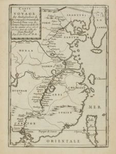 [Atlas]. DUVAL (Pierre). Diverses cartes et tables pour la géographie ancienne pour la chronologie et pour les itinéraires et voyages ... [relié à la suite] La chronologie en plusieurs tables. [Et:] [Cartes pour les itinéraires et voyages modernes]. A Paris, chez l’auteur, 1665. Trois parties en un volume in-4 oblong (20 x 27,3 cm), [2] f. (titres), 29 cartes, 20 p. ; [1] f. (titre), 4 p., 15 f. (tableaux gravés) ; 27 cartes. Veau brun époque, dos à 5 nerfs, titre doré, caissons ornés, tranches jaspées rouges (coins usés, plats épid., mors fendus, lacunes de couvrure au mors sup. et dos ; quelques rousseurs ; 3 f. de texte en déficit). Edition originale de cet atlas tripartite, composée d'un titre gravé général, un 2e titre pour la première partie, comprenant la dédicace à Guillaume de Lamoignon, 29 cartes (dont deux cartes légèrement plus courtes, la première, la carte des Voyages de St Paul en 2e édition, la seconde, Carte de la Terre Sainte ajoutée), 20 pp. de texte (2 ff. sur les noms et nombres romains, 8 ff. sur le Parallèle de l'Ancienne et de la Nouvelle Géographie), un titre, 4 pp. d'Avant- Propos sur la Chronologie, 13 tableaux, 2 ff.n.ch. Les noms des Princes Souverains...., et 27 cartes sur 25 feuilles. Il manque le titre et les 4 pages de texte de la dernière partie. Soit au total, 56 cartes (sur 54 feuilles) parmi lesquelles : une carte du monde, une carte d'Assyrie et de Syrie, cartes pour la Guerre de Troye et la Navigation d'Ulysse, les empires du Grand Cyrus et des Perses, la Lybie et l'Egypte selon Hérodote, l'Empire des Sarrazins, [la région de l'Ouzbékistan avec Samarcande et Bochara], la France Antarctique ou Rio Janeiro au Brésil, la Floride française, plusieurs itinéraires de Perse, le chemin de Constantinople par la Romanie, l'itinéraire du Caire à la Mecque et à Gaza, l'itinéraire de Raguse à Belgrade par Bosna-Serai, la route de Surate à Mazulptan par Orengabat et Golconde, etc. (Pastoureau, Duval VI A, VII A).