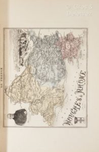 [Atlas]. [France]. MARTINEAU (A.), STEIN (H.) Nouvel atlas illustré de la France et ses colonies Paris, Direction et Administration, 1905. In-folio (39,5 x 40 cm.), [2] f. (titre, intro.), 120 cartes, reliure de l’éditeur demi-chagrin, dos à 5 nerfs, titre doré, caisson orné d'instruments géographique, titre et décor doré sur le plat sup. (coins émoussés, coiffes frottés, saliss. sur les plats, dech. sur les 2 cartes dépliantes). Atlas illustré comprenant 120 cartes en couleur de la France et de ses colonies, dont cinq sur double page et deux une grande carte dépliante de France topographique et des chemins de fer européens.