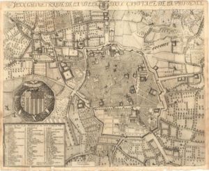 [Provence]. CUNDIER (Louis). Plan géométrique de la ville d’Aix, capitale de la Provence. [Aix], [v. 1670]. 1 plan gravé sur cuivre (40 x 49 cm.) (légères rousseurs, petits accrocs - trace de couture - dans la marge inf.) Plan d’Aix de Louis Cundier gravé sur cuivre par lui-même. Il comporte une légende détaillant de nombreux lieux représentés. Il est orné du blason de la ville. Titre hors du cadre. Louis Cundier (1615 ? 1681) fut un géomètre et graveur réputé de la ville d'Aix, suivant les traces de son beau-père, Jacques Maretz.