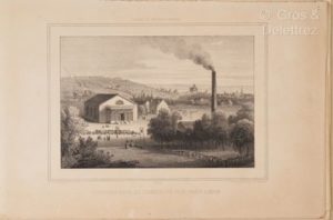 [Belgique]. PONSART DE MALMEDY (J. N.) Itinéraire pittoresque du chemin de fer de Liège à Aix-La-Chapelle. Bruxelles, Lith. Royale P. Degobert, [1843]. In-8 oblong (18 x 27,5), 11 planches et 1 carte dépliante, en feuilles, sous couverture originale lithographiée (feuilles légèrement brunies). Très rare recueil. L’un des rares exemplaires complet de la carte. Date d’après la carte.