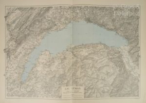 [Atlas]. [Suisse]. DUFOUR (G. H.), dir. Topographische Karte des Schweiz, vermessen und herausgegeben auf Befehl der eidgenössischen Behörden S.l., [Bureau topographique fédéral suisse], 1833-1863 [i.e. 1906-1910]. In-folio (env. 62 x 45 cm.), basane olive époque, dos lisse, auteur, titre, roulette, filets et fleuron dorés (dos insolé). Premier atlas topographique complet de la Suisse, établi sous la direction du général Guillaume Henri Dufour (1787-1875), créateur en 1838 du Bureau topographique fédéral suisse. L’échelle est de 1 : 100 000ème. L’atlas se compose d’un feuillet de titre, et de 24 feuilles doubles imprimées en 2 couleurs (noir, et bleu pour les eaux). Après le titre figure, contrecollé sur un feuillet, un petit tableau d’assemblage. La page de titre est datée de 1833-63 et les cartes portent des dates entre 1906 et 1910, pour la plupart 1909. Exemplaire enrichi : - en début de volume, d’une carte de la région des lacs Majeur, de Lugano et de Côme (éd. 1903, volante) ; une carte générale de la Suisse en couleurs, 1909 ; une carte des chemins de fer de la Suisse, 1911 ; - en fin de volume : 13 feuilles au 1 : 100 000e centrées sur des villes ou régions suisses, tirages de 1903, 1909 ou 1910.