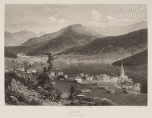 [Suisse]. OSENBRUGGEN (Eduard). Alpes et glaciers de la Suisse : ouvrage comprenant soixante vues pittoresques gravées par divers artistes et un texte topographique traduit de l’allemand par C-F. Girard. Bâle, Krüsi, [vers 1880]. In-4, [3] f., 376 col., pl., percaline verte éditeur, titre doré au dos et plat sup., encadrements en relief aux plats, tranches dorées (rel. défraîchie, qq. rouss. et saliss. marginales). Ouvrage illustré de 64 planches gravées sur acier par C. Huber, dont un titre-frontispice.